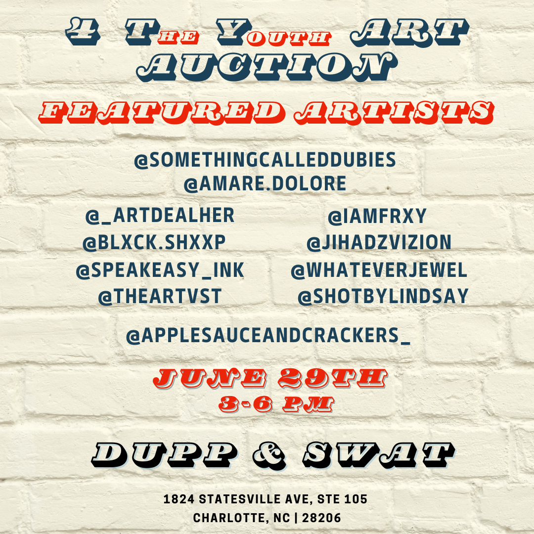 On 6/29 we debuted our first official event, the 4 The Youth Art Auction ~ The show featured 10 of Charlotte’s favorite artists, designers & creators. Every piece of art in the exhibit was up for grabs with ALL proceeds going towards school donations for local and global youth! Thanks to our auction winners, we were able to raise over $800 for students in need.
