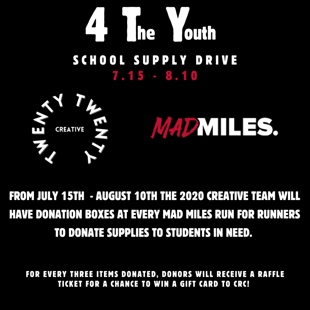 This summer, we had the opportunity to table and collect donations within the Mad Miles community for our 4 The Youth School Drive. We’re so grateful for the runners and their support of the cause. They provided 200+ items that will help youth return to school easily! We want to give a huge shoutout to our raffle winner, Lisa B., and everyone who donated or popped by our table this month!